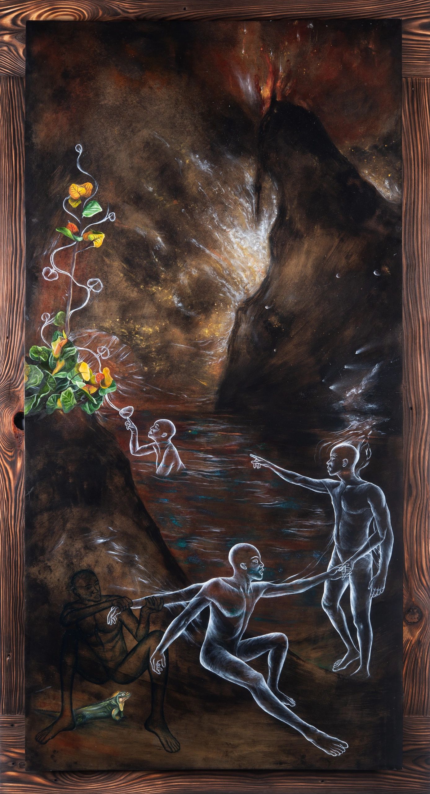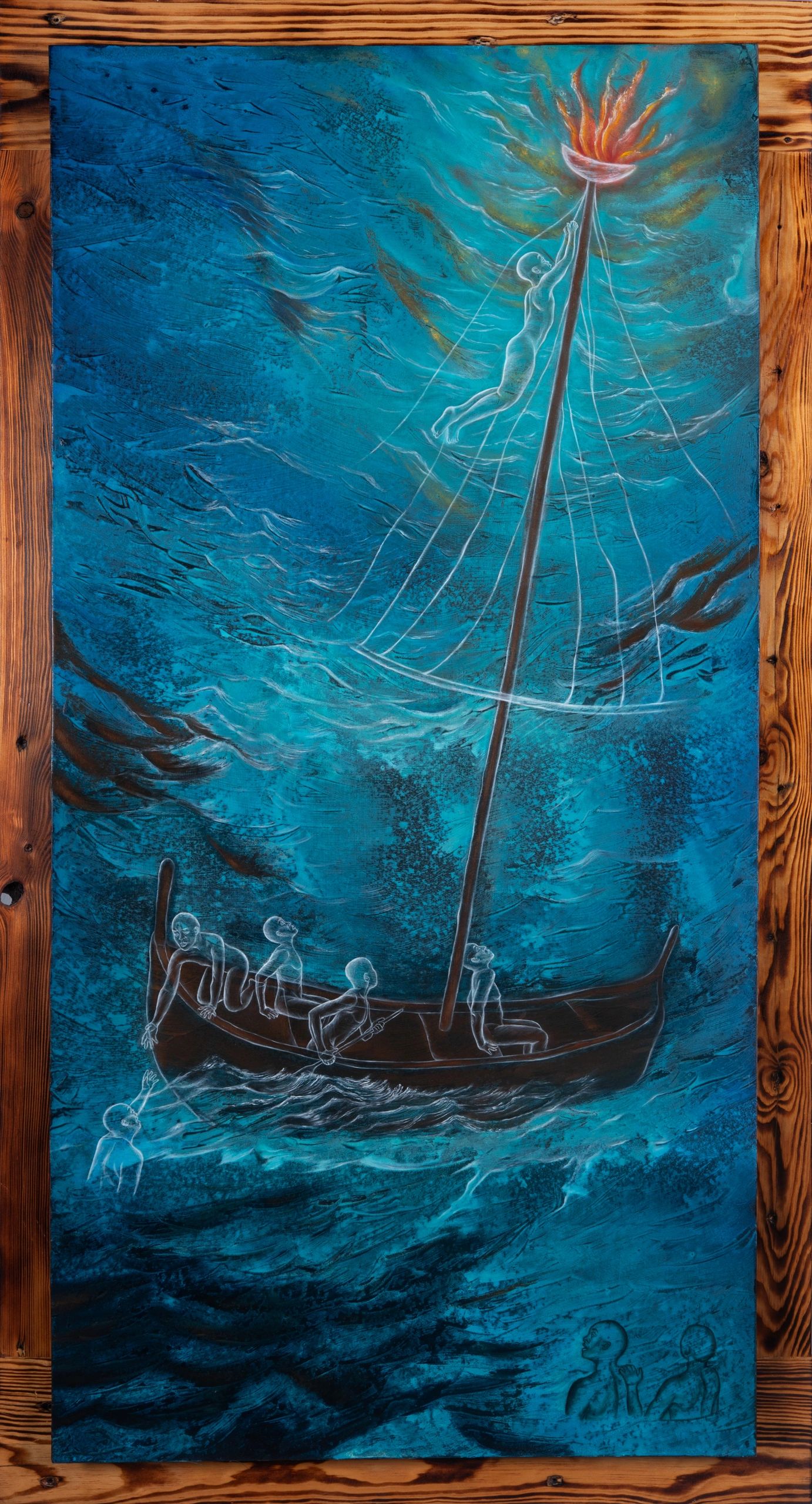 This piece draws direct inspiration from Hieronymus Bosch’s ”The Damned in Hell”, particularly in its compositional structure and symbolic visual language. While reinterpreting Bosch’s allegorical themes through contemporary materials and context, I aimed to reflect on cycles of destruction and renewal. The influence is acknowledged as an intentional homage to Bosch’s visionary approach to the moral and spiritual complexity of the human condition.